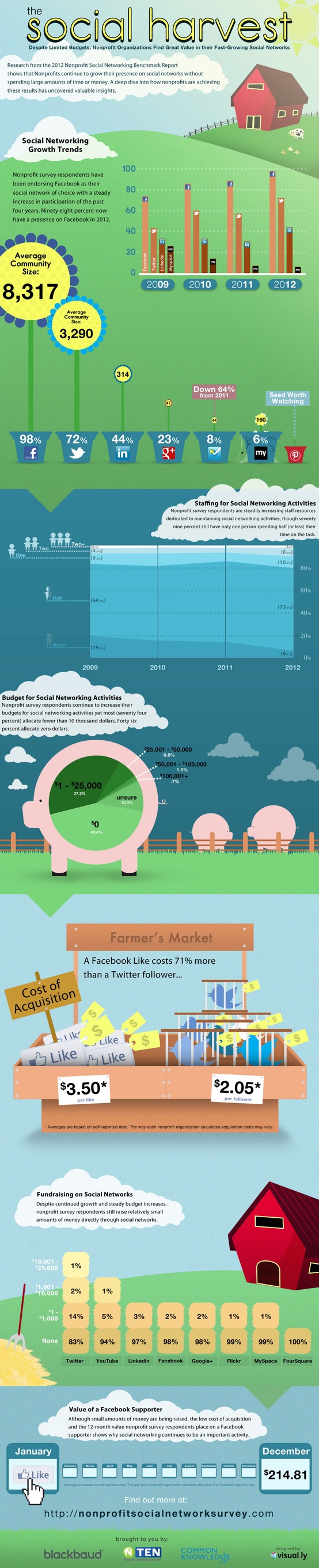 In 2012, 98% of Non Profits now have a Facebook presence as part of their Marketing and Networking plan and boast a community of an average of 8,317.